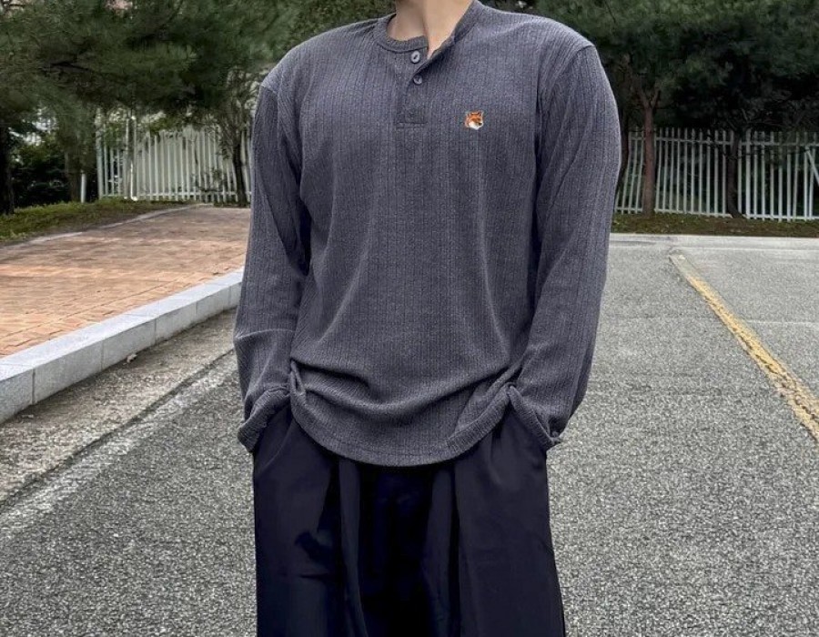 < 메(종)키츠네 주황여우 헨리넥 긴팔티 0123 >< 메(종)키츠네 주황여우 헨리넥 긴팔티 0123 >★메종 키츠네 특유의 감각적인 무드가 돋보이는 헨리넥 긴팔 티셔츠입니다.★가슴 한쪽에 포인트로 들어간 시그니처 주황 여우 패치가브랜드 아이덴티티를 확실하게 살려주며, 심플한 디자인 속에 위트를 더해줍니다.★헨리넥 디자인으로 일반 라운드 티셔츠보다 한층 더 세련된 분위기를연출할 수 있으며, 버튼 디테일로 단독 착용은 물론 아우터 이