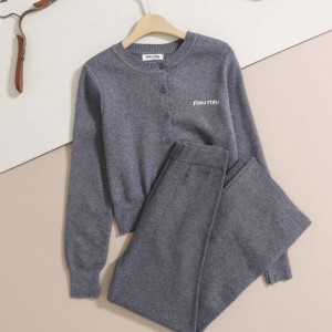 #미우미우 [ miu ] 수입 스몰 레터링 라운드넥 가디건 & 니트 와이드 팬츠 set 입고?ㄱ #여성의류 #가디건세트 > CLOTHES-의류